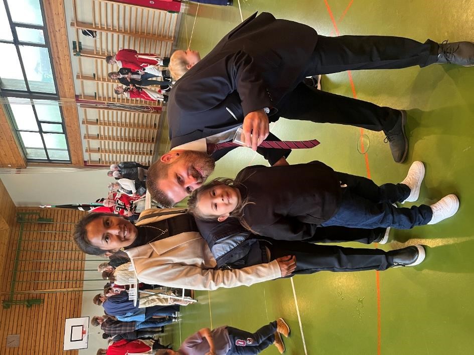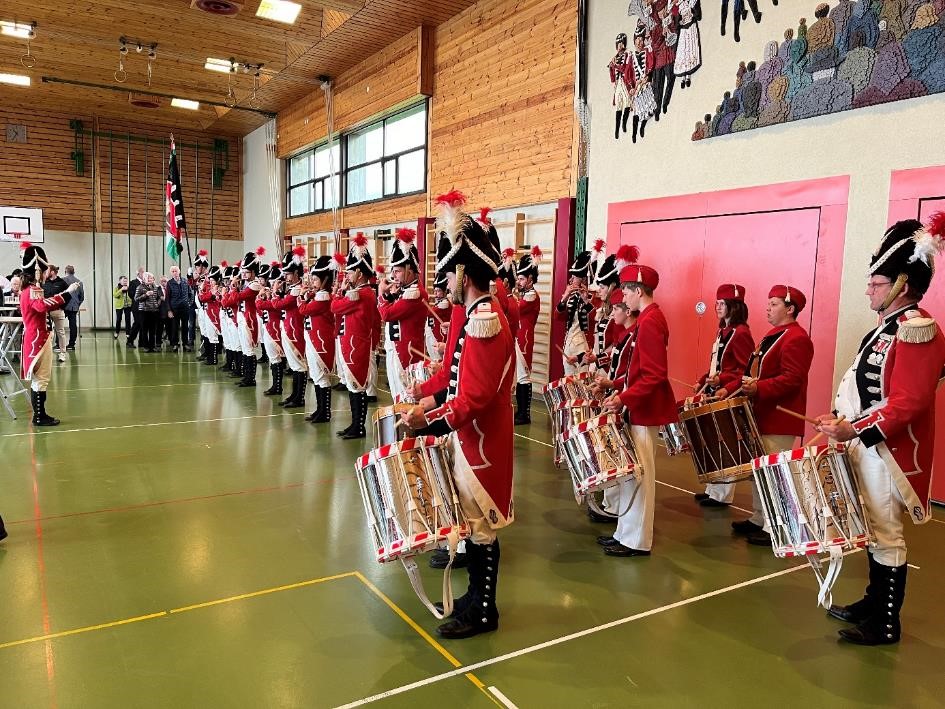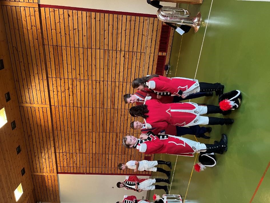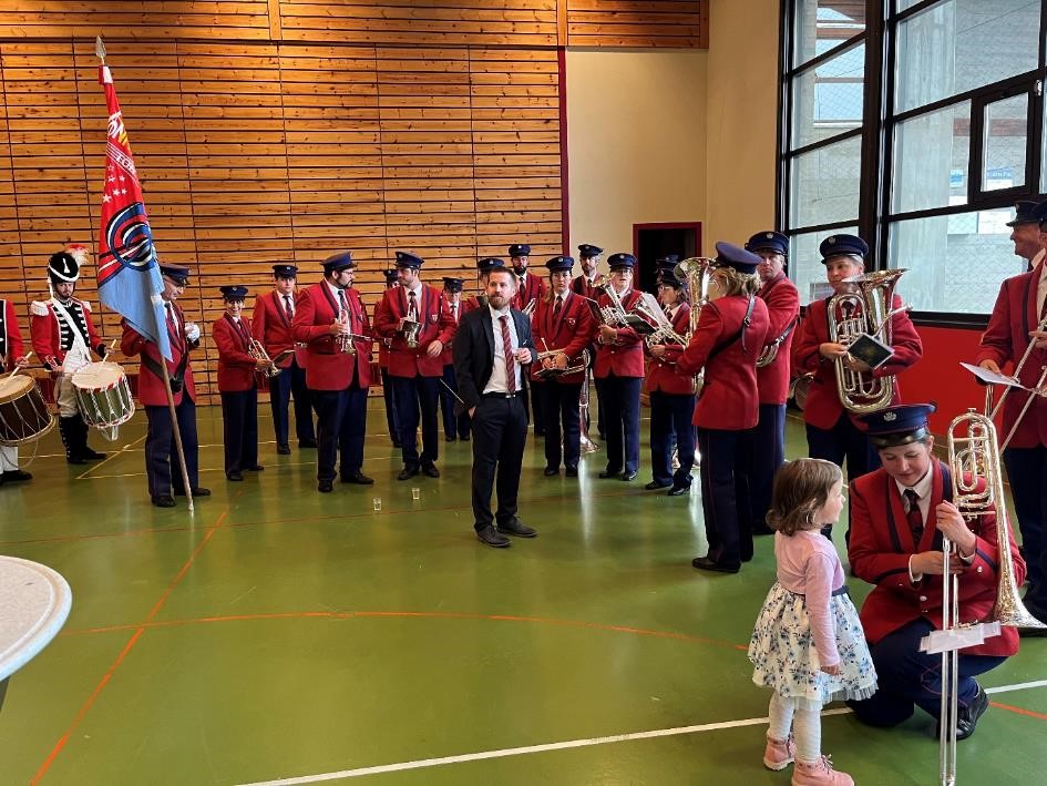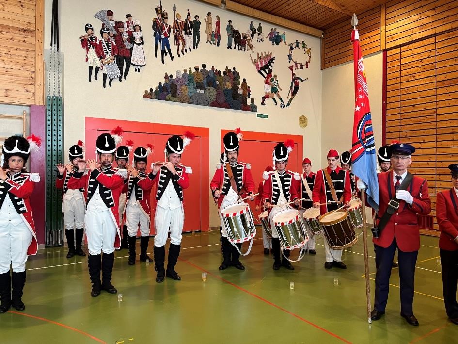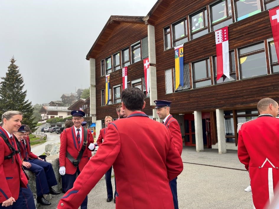Wegen des schlechten Wetters verschoben wir uns am Anschluss der Messe in die Mehrzweckhalle, wo wir das Apero von der Gemeinde offeriert bekamen.