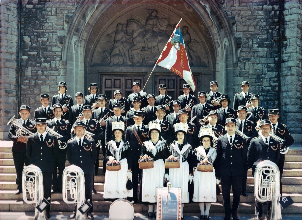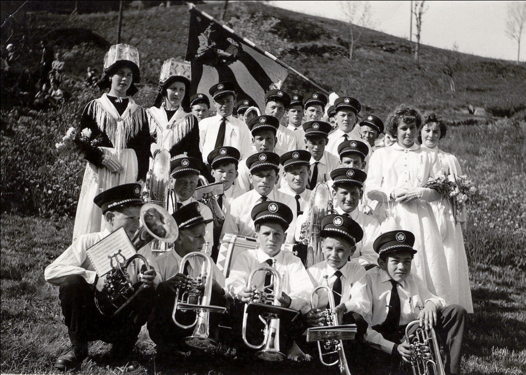 Fortan wurde nun zweimal während der Woche und jeden zweiten Sonntagnachmittag geprobt. Am 18. Mai 1958 trat man erstmals öffentlich auf und weihte auch eine Fahne. Als Einheitskleid dienten damals ein weisses Hemd, eine schwarze Krawatte und eine graue Kapitänmütze. Die erste echte Uniform wurde 1964 angeschafft und eine weitere gemeinsam mit der zweiten Fahne 1977.