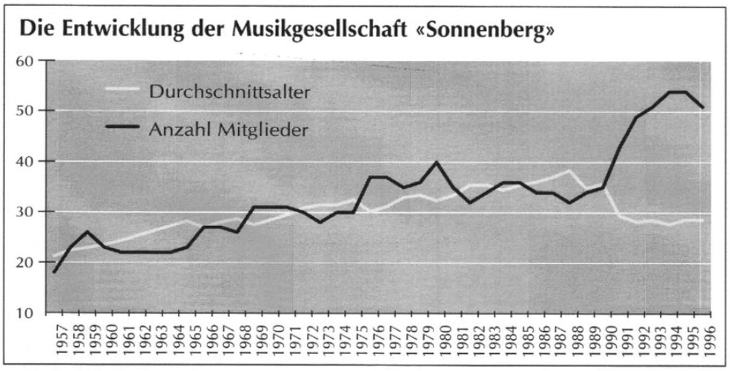 Möge das 60. Oberwalliser Musikfest am 7. 8. und 9. Juni 1996 zum weiteren Markstein für die „Sonnenberg „ werden und dazu beitragen, die Freude an der Blasmusik in unserem Dorf weiterhin zu pflegen und zu fördern.
